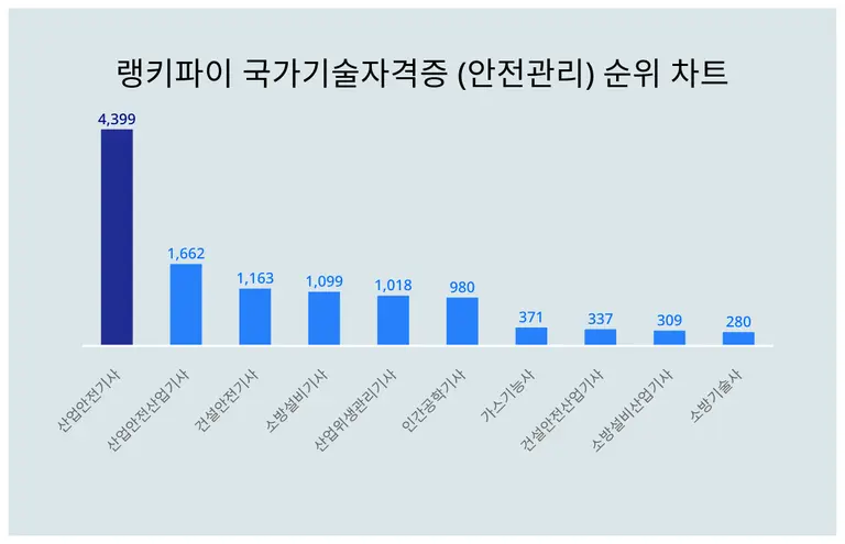 추가적으로 랭키파이가 알아본 결과, 11위는 건설안전기술사, 12위 화재감식평가기사, 13위 가스산업기사, 14위 가스기사, 15위 산업위생관리산업기사, 16위 방재기사, 17위 가스기능장, 18위 화재감식평가산업기사, 19위 전기안전기술사, 20위는 기계안전기술사 순으로 집계됐다.
