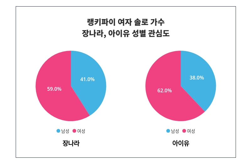 성별 관심도 조사 결과, 장나라는 '여성'에서 '59%'로 남성보다 높은 관심을 받는 것으로 나타났다.