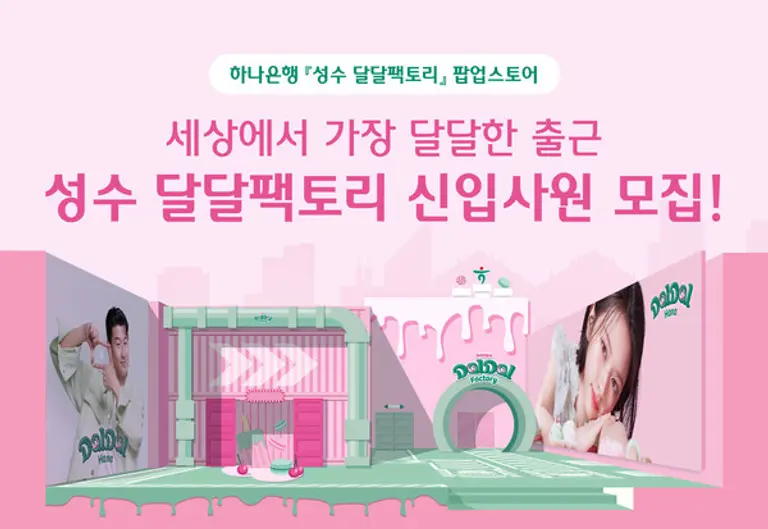 |스마트투데이=김국헌 기자| 하나은행이 오는 14일 오후 9시까지 서울 성수동에 팝업스토어 ‘성수 달달팩토리’를 열고, 급여 통장 ‘달달하나 통장’을 홍보한다.