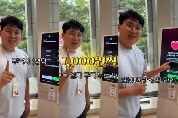 그는 자신을 자칭 "LG전자 홍보맨"이라고 하면서 지난 4일 LG트윈빌딩에 생긴 기부 키오스크를 소개했다.