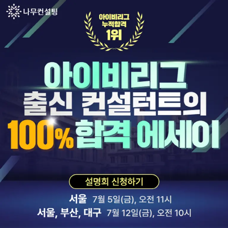 미국 대학 입학 컨설팅 전문 나무컨설팅은 아이비리그 인재상에 맞춘 구체적인 합격 전략과 지원자의 독특한 경험과 능력을 최대한 강조할 수 있는 체계적이고 효과적인 원서 작성법을 공개하는 설명회를 개최한다고 10일 밝혔다.