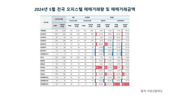 11일 빅데이터 기반 상업용 부동산 전문기업 부동산플래닛(각자대표 정수민, 엄현포)이 발표한 '2024년 5월 전국 부동산 유형별 매매시장 동향 보고서'에 따르면 5월 오피스텔 거래량은 2778건으로 4월 2433건 대비 14.2% 증가했다. 전체 부동산 유형 중 최고 상승률이다.
