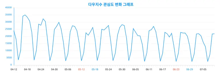 이번에 공개된 다우지수 관련 90일간 트렌드 변화 그래프는 트렌드 변동을 데이터로 흥미롭게 보여주고 있다.