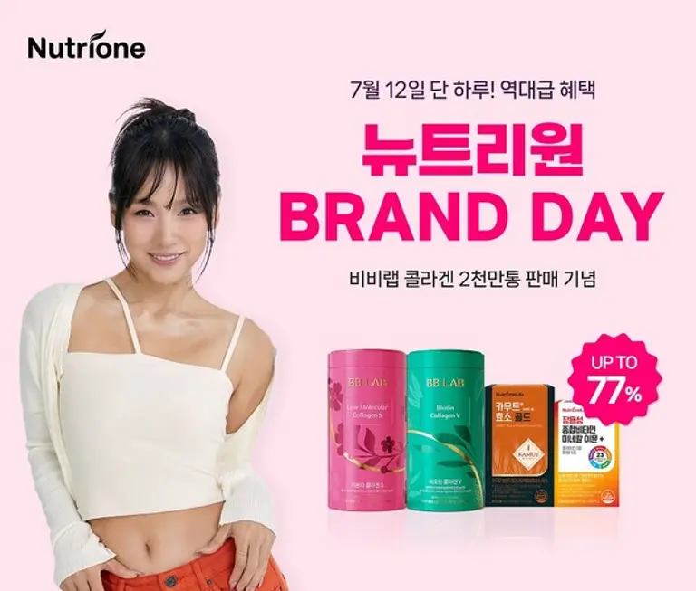 뉴트리원은 이날 하루 동안 핑크통 콜라겐으로 불리는 ‘비비랩 저분자 콜라겐 S’ 등 행사 품목 8종을 최대 77% 할인가에 판매하고, 구매 고객 대상 ‘비비랩 고소한 곡물 발효효소’를 증정한다. 스마트스토어 알림받기를 신청하면 3000원 할인 혜택도 받을 수 있다.