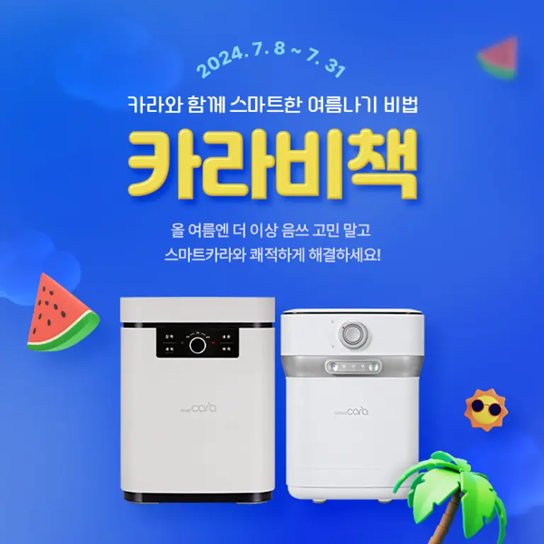 |스마트투데이=이은형 기자 | 친환경 음식물처리기 브랜드 스마트카라가 쾌적한 여름 나기를 위해 이번 달 말일까지 ‘카라비책’ 프로모션을 진행한다고 11일 밝혔다.