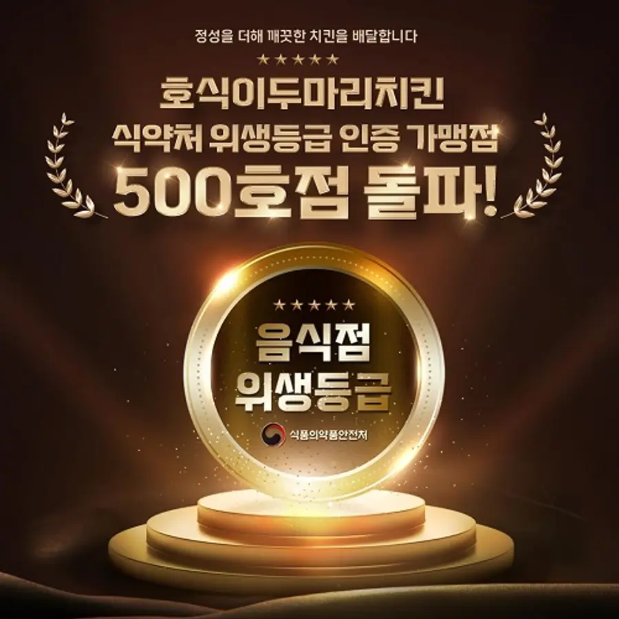 |스마트투데이=이은형 기자 | 치킨 프랜차이즈 대표 브랜드 호식이두마리치킨이 최근 위생등급 가맹점 500호점을 달성했다고 11일 밝혔다.