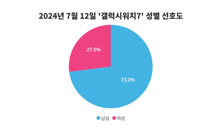특히, 갤럭시워치7에 대한 성별 관심도 조사 결과, 남성이 73%의 비율로 더 높은 관심을 보이는 것으로 나타나, 이 인기 키워드에 대한 성별편차를 드러냈다.