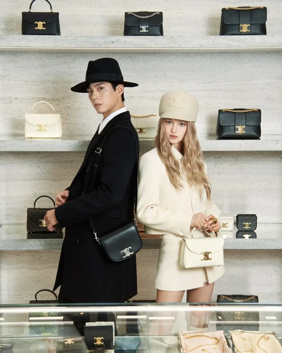 이날 박보검은 블랙 컬러의 페도라와 셀린느 옴므 컬렉션 블랙 수트를 입고 베사체 트리옹프 백으로 시크하고 쿨한 무드의 스타일을 연출했다. 다니엘은 이와 대비되는 화이트 계열의 트위드 셋업과 롱부츠, 틴 니노 백을 매치하여 우아하면서도 세련된 룩을 선보여 사랑스러운 매력을 드러냈다.