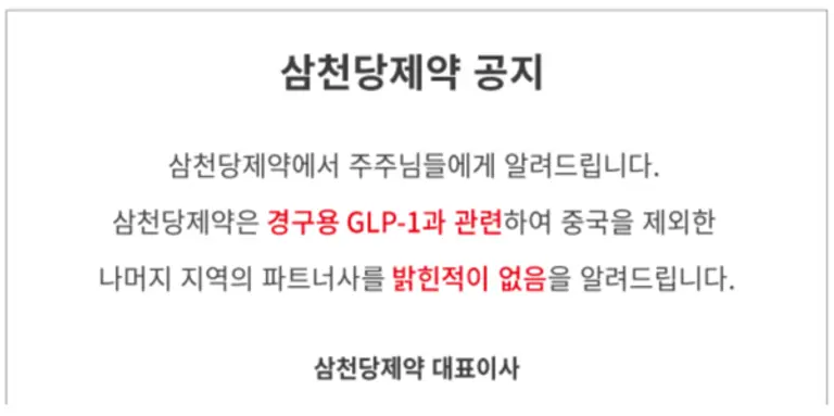 다른 하나에서는 "삼천당제약은 경구용 GLP-1과 관련하여 중국을 제외한 나머지 지역의 파트너사를 밝힌 적이 없음을 알려드린다"고 밝히고 있다.