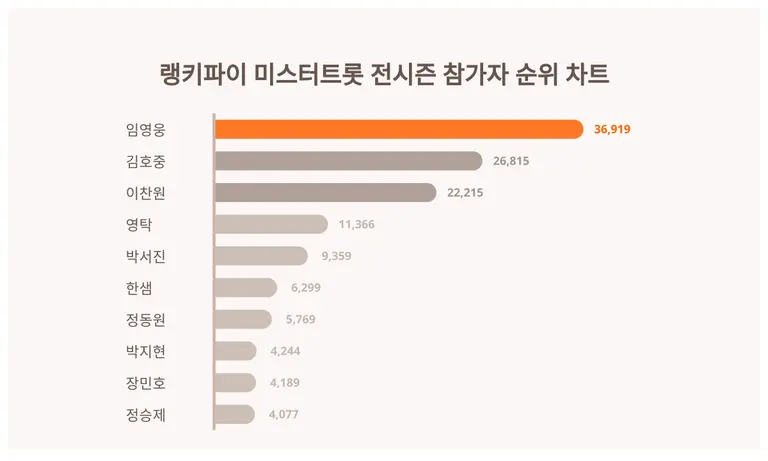 | 9 | 장민호 | 4,189 | 2% | 8% | 13% | 18% | 59% |