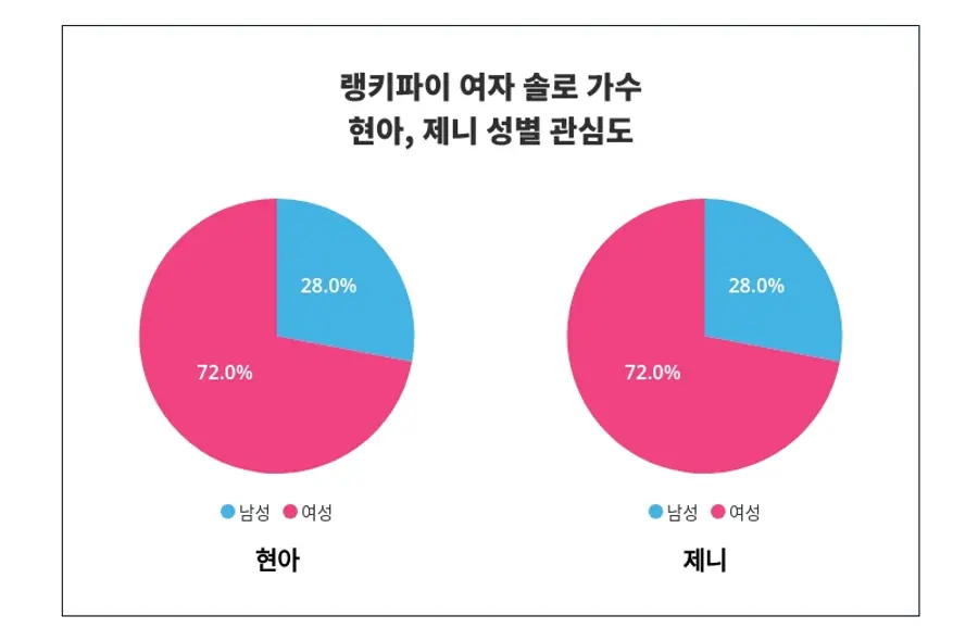 성별 관심도 조사 결과, 현아는 '여성'에서 '72%'로 남성보다 높은 관심을 받는 것으로 나타났다.