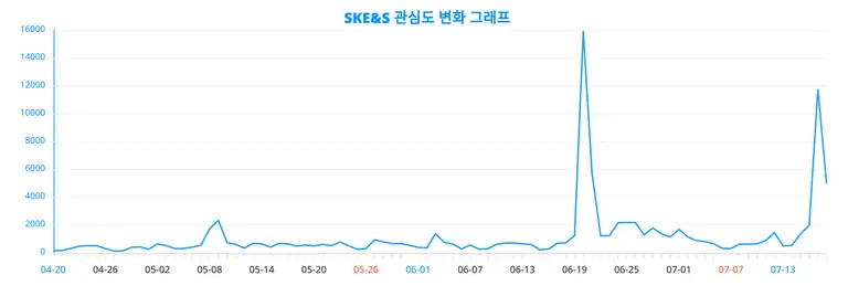 이번에 공개된 SKE&S 관련 90일간 트렌드 변화 그래프는 트렌드 변동을 데이터로 흥미롭게 보여주고 있다.