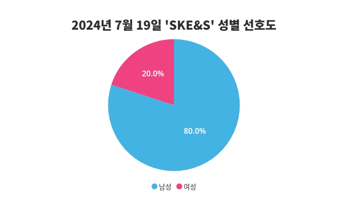 금일 SKE&S에 대한 성별 관심 조사에서는 남성이 80%의 비율로 더 큰 관심을 보이며 성별 간의 차이를 드러냈다.
