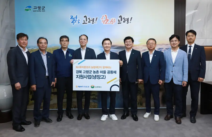 |스마트투데이=김세형 기자| NH투자증권은 경상북도 고령군 마을공동체에 냉장고 38대를 전달했다고 19일 밝혔다. 전달식은 고령군청에서 진행했으며, 김용기 NH투자증권 부사장, 이남철 고령군수 등이 참석했다.