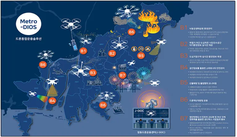 또한, 새롭게 선정된 부산시는 초고밀도 지역 및 낙동강 생태공원의 환경관리, 자연재해·재난 등을 드론으로 해결하는 통합형 시스템을 구축하여 실증하고, 장래에 해외 자매도시에 서비스 수출을 계획하고 있다.