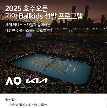 |스마트투데이=이주영 기자| 기아는 내년 1월 호주 멜버른에서 열리는 ‘2025 호주오픈’에서 활약할 볼키즈(Ball Kids)를 다음달 21일(수)까지 모집한다고 22일 밝혔다.