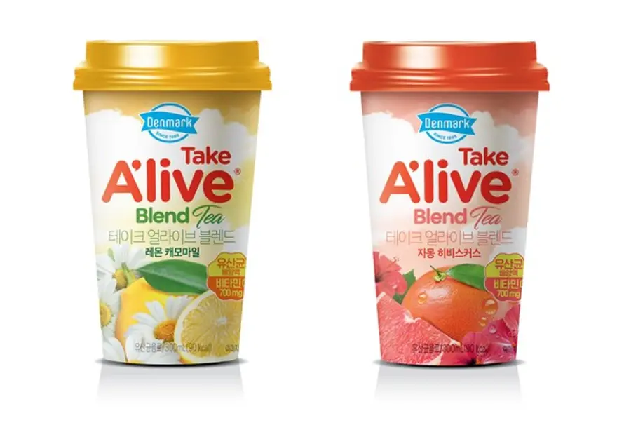 ‘덴마크 테이크 얼라이브’는 동원F&B가 2015년 출시한 국내 최초의 컵 타입 유산균 음료다. ‘덴마크 테이크 얼라이브’는 탄산을 넣어 청량감을 높인 ‘덴마크 테이크 얼라이브 제로 톡’에 이어 허브티를 접목시킨 ‘덴마크 테이크 얼라이브 블렌드’까지 진화를 거듭하고 있다.