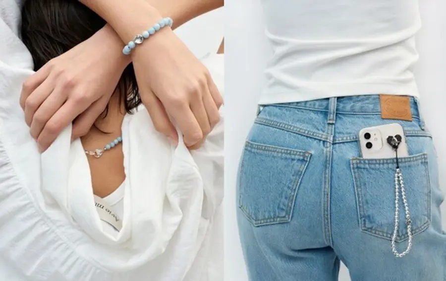 올해 여름을 겨냥한 아비에무아 액세서리 라인업은 귀걸이·반지·팔찌·목걸이·폰 스트랩까지 다양한 아이템으로 구성됐다. 비즈 액세서리는 목걸이와 팔찌 두 가지로 선보였으며, 오닉스·제이드·커넬리언·아쿠아마린 등 천연 원석을 사용해 브랜드 고유의 감성과 여름 바캉스 룩에 어울리는 청량한 분위기를 자아낸다.