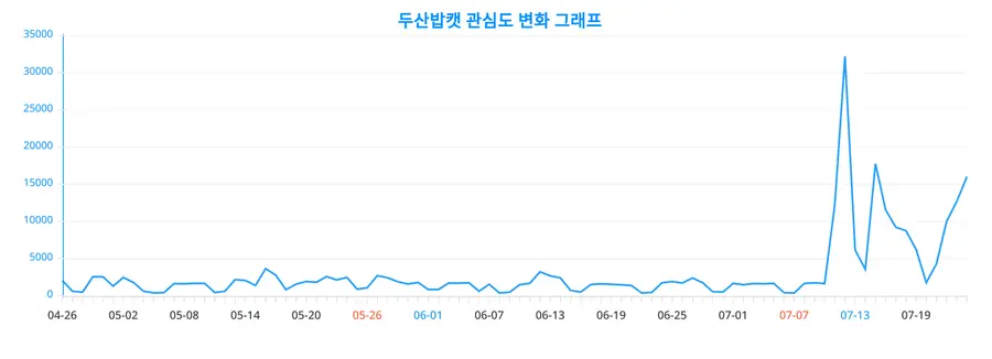 두산밥캣에 관한 트렌드지수 그래프가 최근 업데이트 되었으며, 현재 16,035 포인트를 기록, 전일 12,713 포인트 대비 상승하였다.