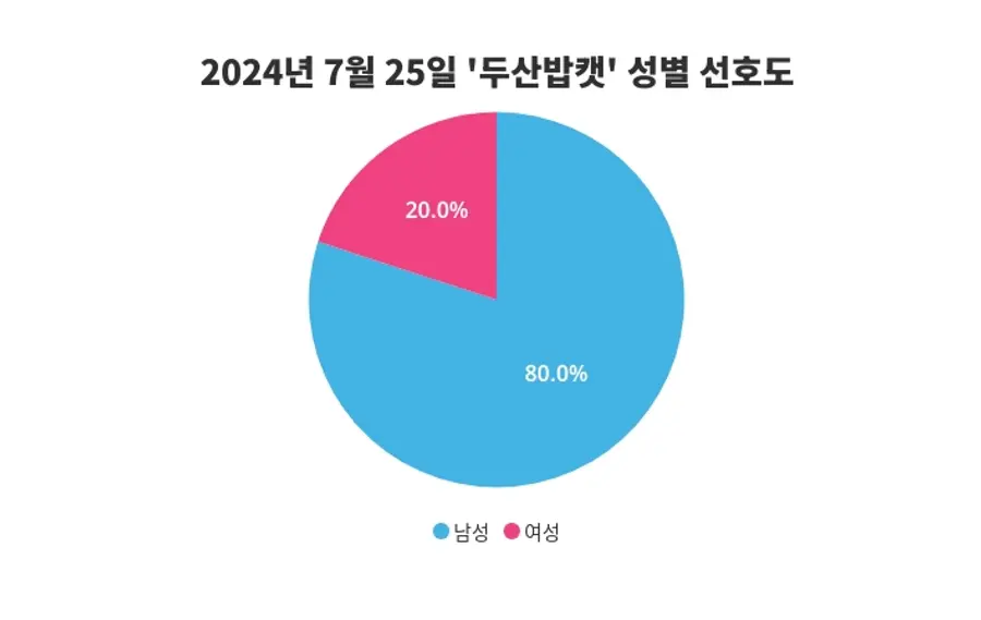 이는 전일 성별 선호도 남성 78%, 여성 22%의 비율과도 비교할 수 있다.