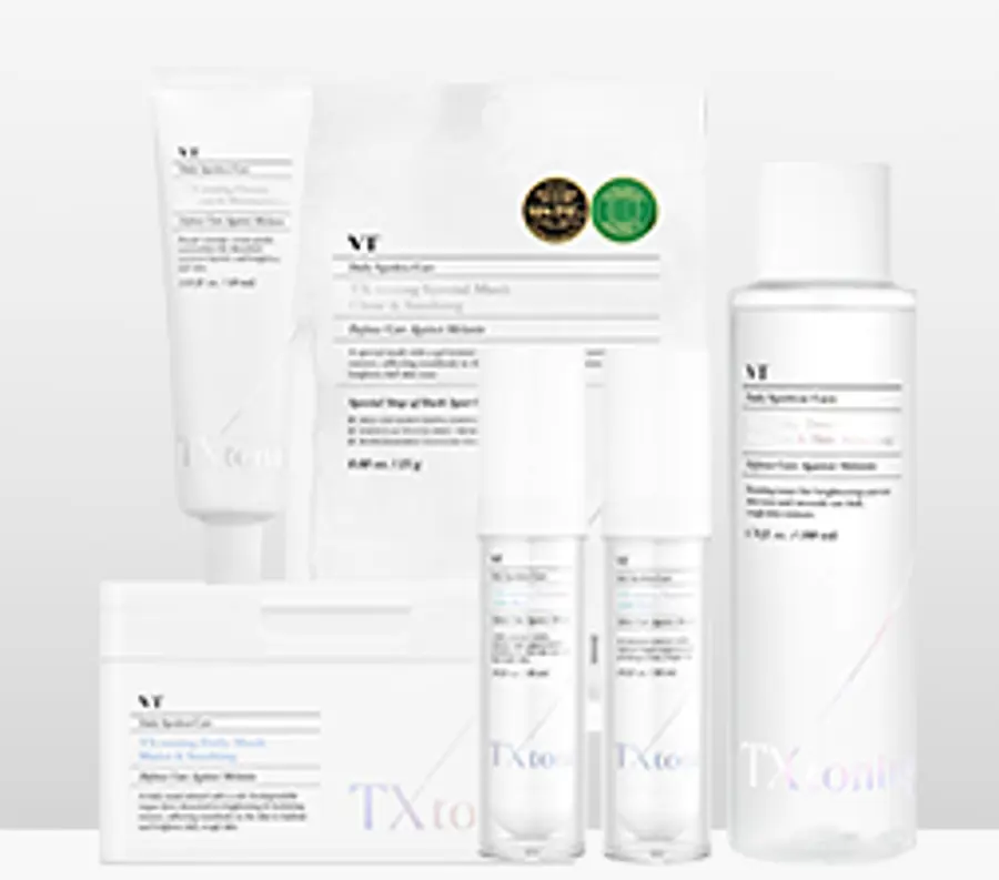 티엑스토닝라인은 일명 ‘바르는 토닝샷’으로 불리는 제품이다. 고순도의 3중 토닝 콤플렉스(트라넥사믹애씨드, 글루타티온, 나이아신아마이드)를 활용한 고함량 기능성 제품으로 기미·잡티 케어로 투명한 피부를 가꾸는데 도움을 준다.
