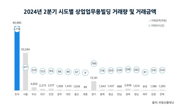 프롭테크 부동산플래닛은 국토교통부 실거래가 자료를 기반으로 올해 2분기 전국 상업업무용 빌딩 거래 시장 분석 결과를 1일 발표했다.