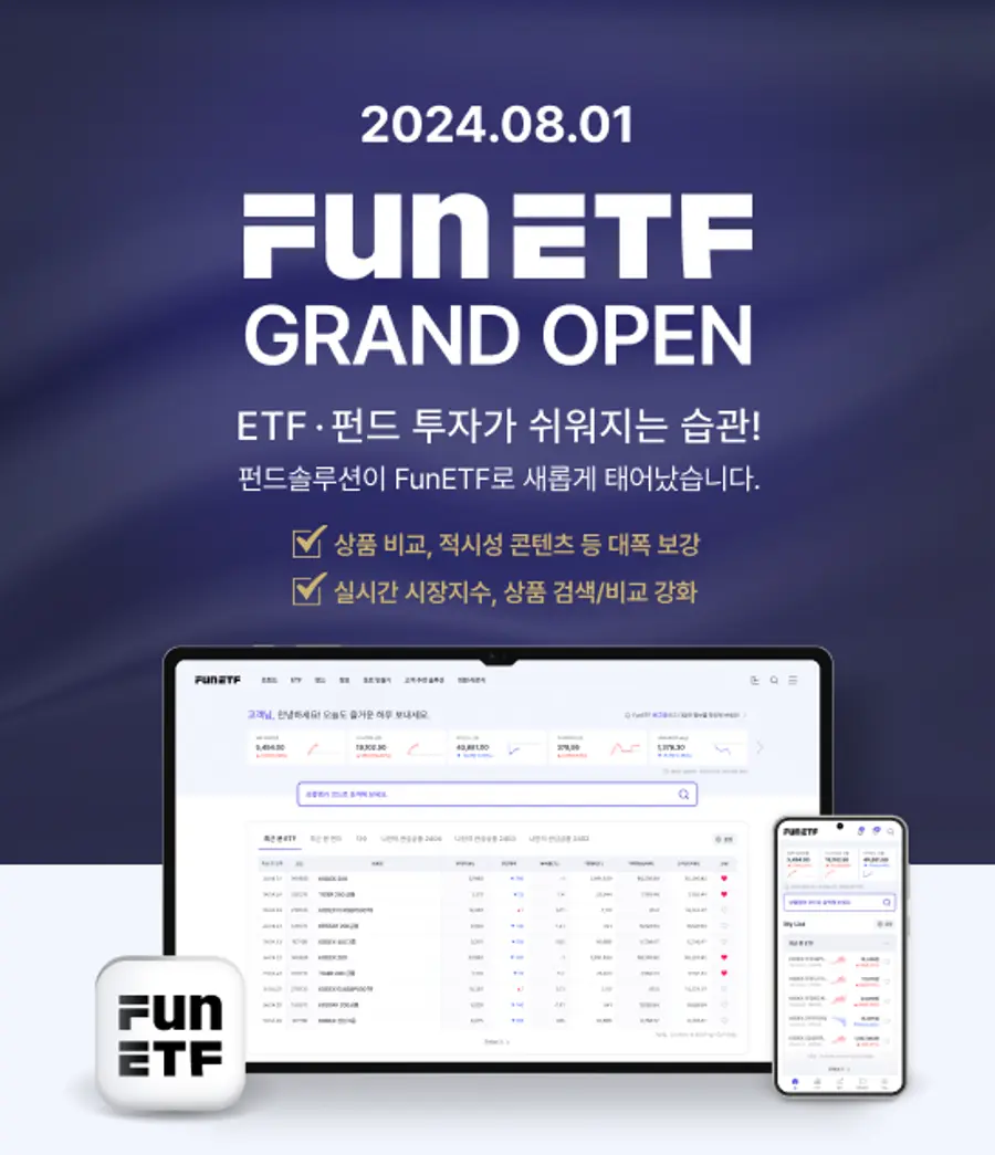 삼성자산운용 관계자는 “투자자들이 다양한 ETF, 펀드 상품들을 스스로 조회하고 투자할 상품을 선택할 수 있도록 PB, 투자자, 매니저 등 다양한 이용자들의 의견을 받아 서비스를 개발했다”며 “투자자들이 ETF와 펀드를 고를 때 FunETF를 통해 편리하게 ‘이해하고 투자하기’를 실천할 수 있도록 더 쉽고 다양한 서비스를 제공하고자 끊임없이 노력하겠다”고 전했다.
