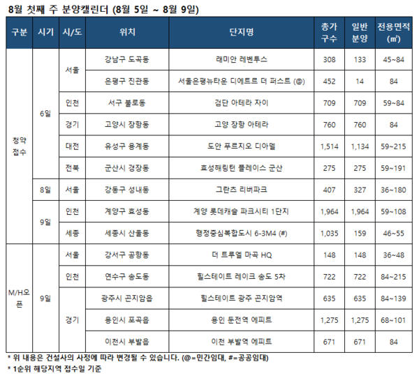 모델하우스 오픈 예정은 5곳이며, 당첨자 발표는 4곳, 정당 계약은 4곳이 예정돼 있다.