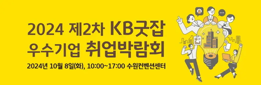 오는 10월 8일 수원컨벤션센터 전시홀에서 열리는 이번 박람회는 KB굿잡의 최대 강점인 협업기관과의 강력한 네트워킹을 기반으로 KB금융그룹 추천 우수기업, 대기업 협력사, 코스닥 상장사 등 우량기업의 참가를 확대해 우수 구직자의 참여를 유도하는 일자리 선순환 체계를 구축할 예정이다.