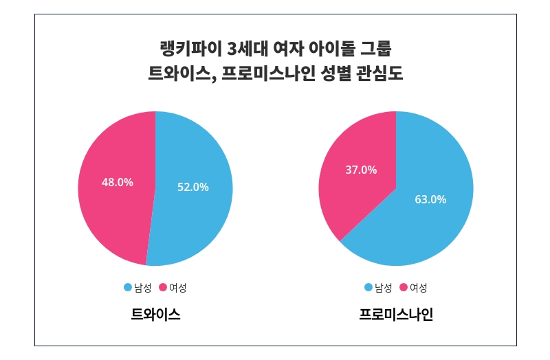 성별 관심도 부문에서 트와이스의 성별 관심도와 프로미스나인'의 성별 관심도가 어떻게 분포되어 있는지가 공개되었다.