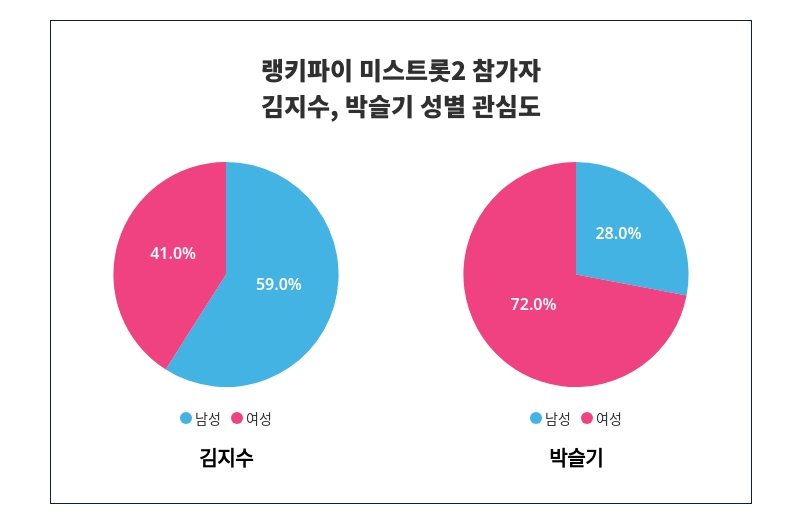 랭키파이의 데이터는 직전 주(2024년 7월 29일~4일) 포털 검색량과 빅데이터 점수 분석을 통한 지수화를 기본으로 하고 있으며, 이 데이터를 활용해 두 가지 트렌드에 대한 성별 및 연령별 관심도를 비교, 분석하여 대중의 관심도를 조사하는 데 주력하고 있다.