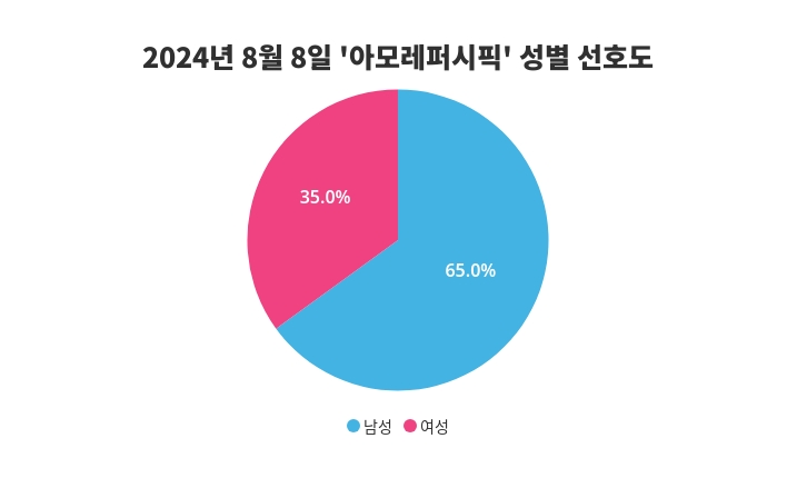 특히, 아모레퍼시픽에 대한 성별 관심도 조사 결과, 남성이 65%의 비율로 더 높은 관심을 보이는 것으로 나타나, 이 인기 키워드에 대한 성별편차를 드러냈다.