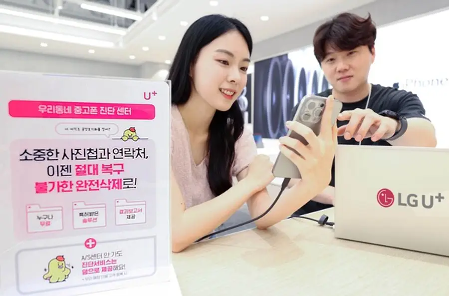 LG유플러스는 중고폰 직거래 시 개인정보가 남아 있어 고객들이 피해를 겪는 경우가 증가함에 따라, 지난 5월부터 글로벌 1위 데이터 삭제 진단 서비스 업체인 ‘블랑코코리아’와 손잡고 업계 최초로 중고폰에 저장된 데이터를 안전하고 완벽하게 삭제하는 U+진단센터를 운영하고 있다.
