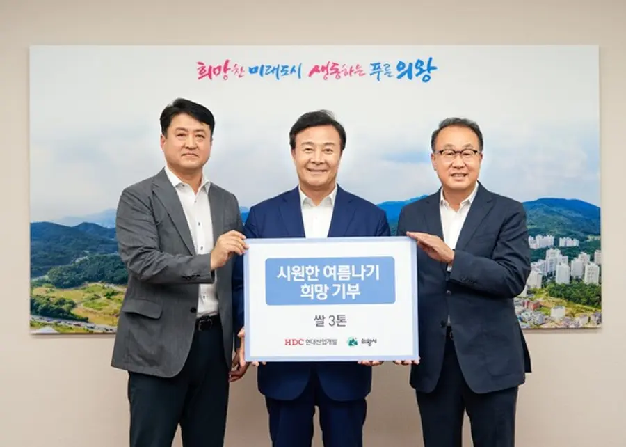 의왕시청에서 열린 쌀 기부 전달식에는 김성제 의왕시장, 신왕섭 HDC현대산업개발 실장, 최영근 HDC현대산업개발 상무 등이 참석했다. 이번에 전달된 쌀 3톤은 의왕시 청계동을 포함한 5곳의 주민센터에 기부되어 의왕시에 거주하는 소외이웃들을 위해 사용될 예정이다.