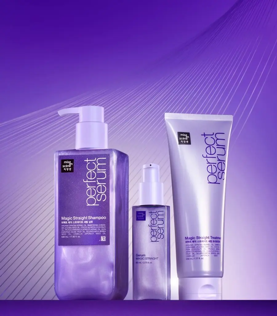 퍼펙트 매직 스트레이트 샴푸는 모발의 습도를 케어해 부스스함을 정돈하고, 트리트먼트는 샴푸 이후 더욱 확실한 스트레이트닝 효과를 제공한다. 특히 트리트먼트는 미쟝센이 개발한 하이드로 매직 코트 기술이 적용되어 곱슬거리는 모발을 매끈하게 펴주고 쫀득한 크림 제형이 모발에 밀착해 윤기를 더한다. 스트레이트닝의 마지막 순서인 세럼은 윤기와 차분함을 더하고 펴진 머리를 오랫동안 지속시켜준다. 여름철에도 쓰기 좋은 가벼운 제형으로, 넉넉하게 발라 잔머리 세팅과 웨트 헤어 연출도 가능하다.