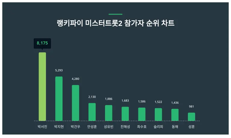 | 1 | 박서진 | 8,175 | 4,412 | 3,763 | 85.3% |