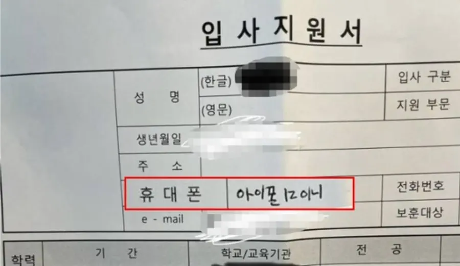 입사지원서 '휴대폰'란에 "아이폰" 기재한 지원자