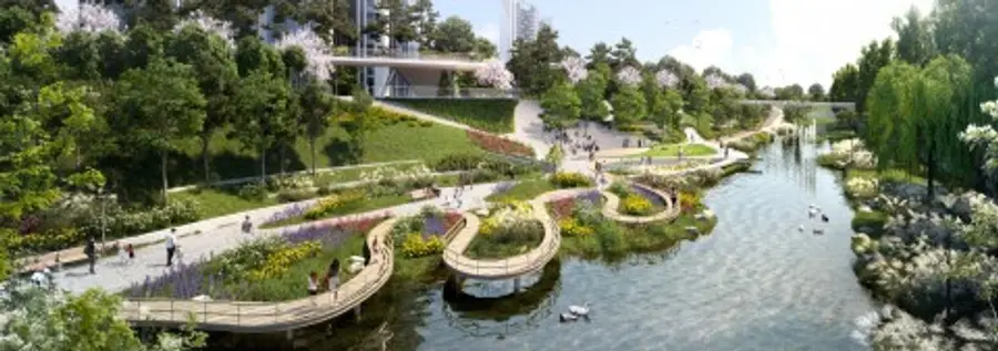 먼저 단지 중앙에는 축구장 약 3배 크기의 자연 숲(2만㎡ 규모)을 조성한다. 또한 울창한 자연숲 사이 썬큰 정원에는 워터스크린 등을 갖춘 수공간이 펼쳐지며 뉴욕 센트럴파크를 떠올리게 하는 자연형 호수를 물놀이시설과 함께 조성하여 가족들의 여가 공간으로 설계한다.