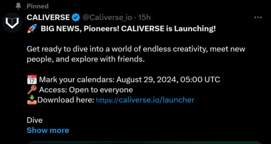칼리버스는 지난 26일 오후 엑스(옛 트위터) 계정에 오는 29일 런칭 소식을 전했다. 29일 새벽 5시(UTC 기준), 우리 시간 29일 오후 2시 글로벌 런칭된다.