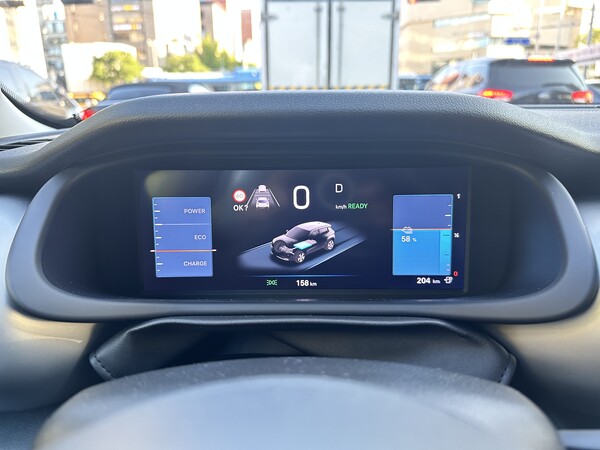 전기차에게 특히 민감한 주행거리는 국내 인증 수치보단 여유로웠다. 배터리 잔량 83%에 표시한 잔여 주행거리는 330km. 75%까지 내려갔을 때 인증거리와 비슷한 수치를 띄웠다. 성인 남성 2명이 탑승한 점, 공조장치 온도를 18도로 설정한 점을 감안해도 넉넉하다. 1.5t(톤) 대에 불과한 비교적 가벼운 공차중량도 한 몫 보탰다.