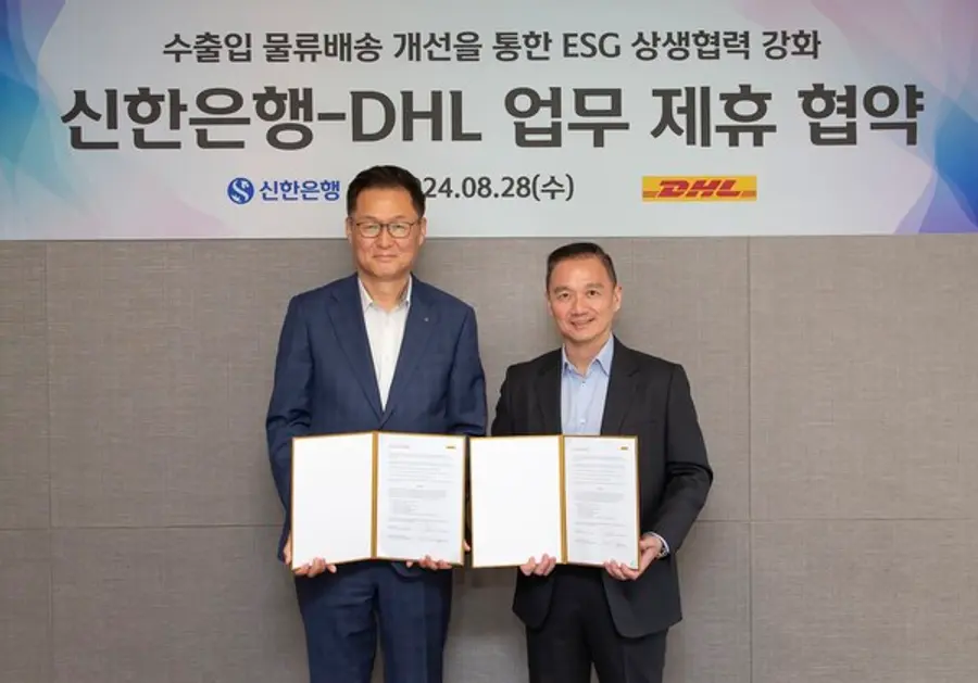|스마트투데이=김국헌 기자| 신한은행은 지난 28일 서울 마포구 DHL코리아 본사에서 DHL코리아와 ESG(환경·사회적 책무·기업지배구조 개선) 상생협력 강화를 위한 업무협약을 체결했다고 29일 밝혔다.
