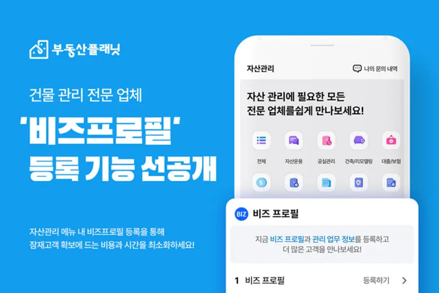 |스마트투데이=이재수 기자| 프롭테크 기업 부동산플래닛(각자대표 정수민, 엄현포)이 자산관리 서비스 출시를 앞두고 비즈프로필 등록 기능을 선공개한다고 29일 밝혔다.