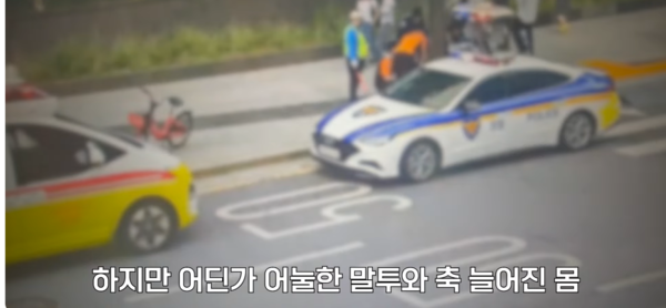 경찰은 쓰러져 있던 여성이 의식 있는 지를 확인한 뒤 조심스레 일으켜 부축하면서 인도로 여성을 데려간다. 함께 출동해 있던 119 구급대원들이 건강 상태를 해본 결과 술 냄새도 나지 않고 맥박도 정상이었다.