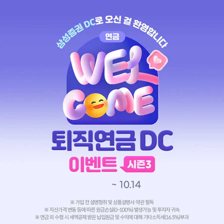 |스마트투데이=김세형 기자| 삼성증권은 10월 14일까지 퇴직연금DC형(확정기여형)을 신규 가입한 고객을 대상으로 커피 기프티콘을 제공하는 이벤트를 진행한다고 30일 밝혔다.
