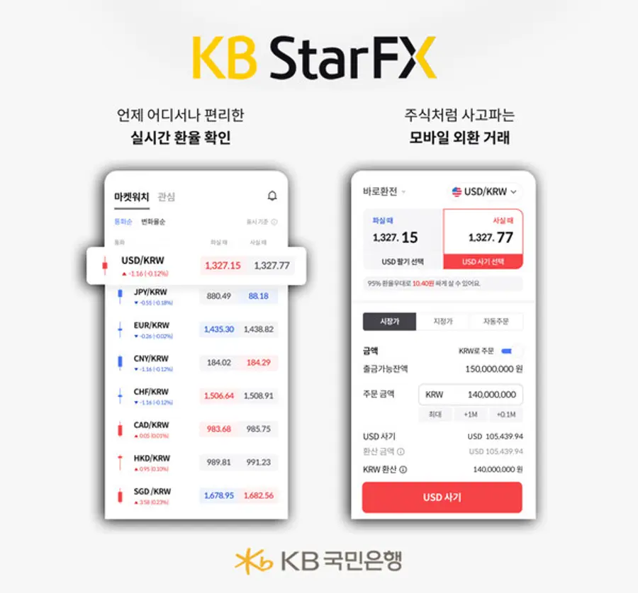 한편 KB국민은행은 이달 말까지 KB 스타 FX 모바일 앱 출시를 기념해 이벤트를 한다. KB 스타 FX 고객 중에서 100달러 이상 환전한 고객 전원에게 커피 쿠폰 등 다양한 경품을 제공한다.