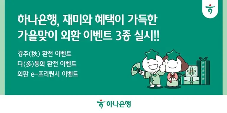 |스마트투데이=김국헌 기자| 하나은행은 가을을 맞아 외환 이벤트 3종을 실시한다고 3일 밝혔다.