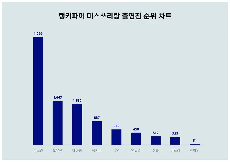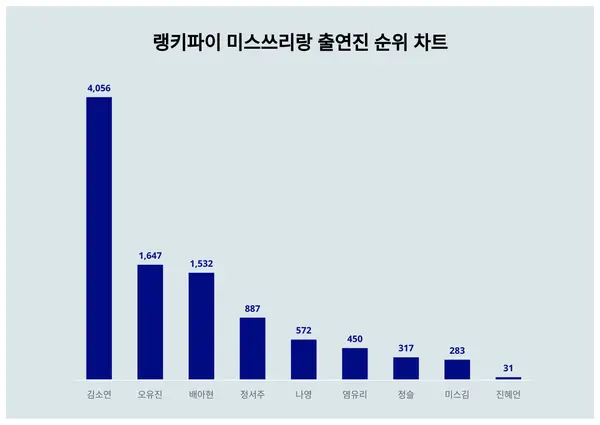▲미스쓰리랑 출연진 트렌드 지수 분석 결과 ⓒ랭키파이