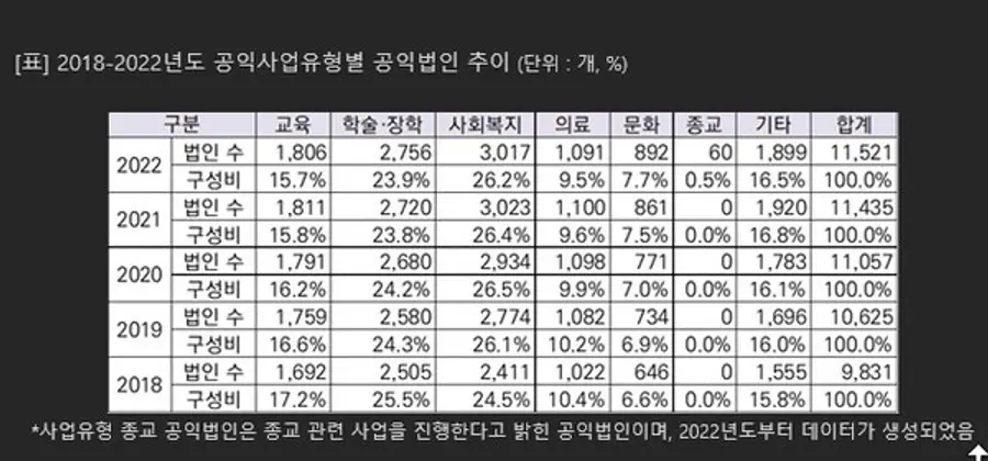 |스마트투데이=이민하 기자| 교육과 의료 공익법인과 개인이나 기업 등이 아닌 국가가 설립한 공익법인 비중이 갈수록 감소하고 있는 것으로 나타났다. 이는 글로벌 ESG 추세 등 기업의 사회적 책임이 강조되고, 취학 연령 등 인구 감소세에 따른 영향으로 풀이된다.
