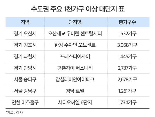 이런 가운데 추석 연휴가 끝나자 마자 수도권에서 1000가구 이상의 대단지 아파트 분양이 이어진다.