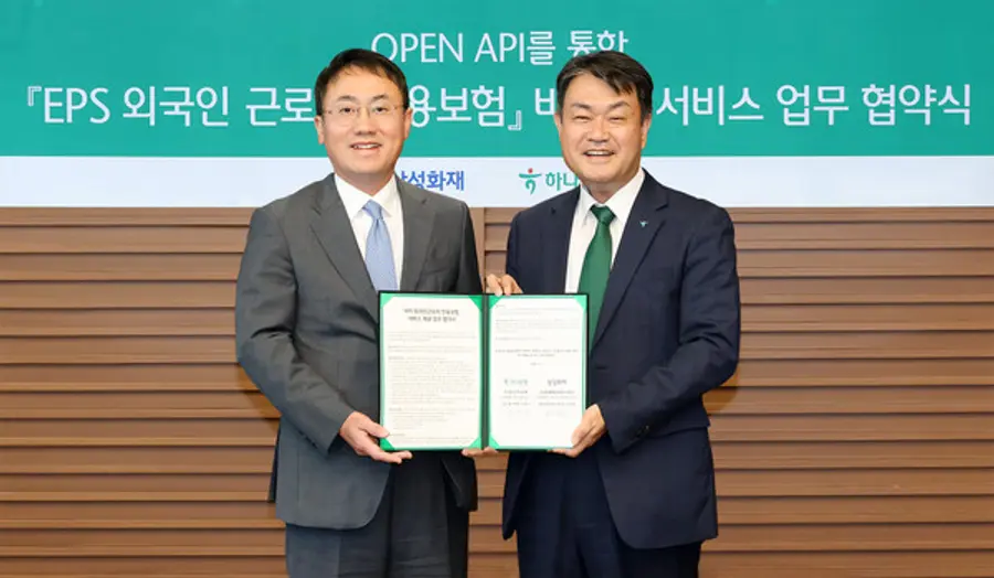 하나은행은 지난 11일 서울 중구 을지로 본점에서 국내 최초로 삼성화재와 EPS(외국인 고용허가제) 외국인 근로자 전용보험 서비스를 위한 업무 협약을 체결했다고 12일 밝혔다.